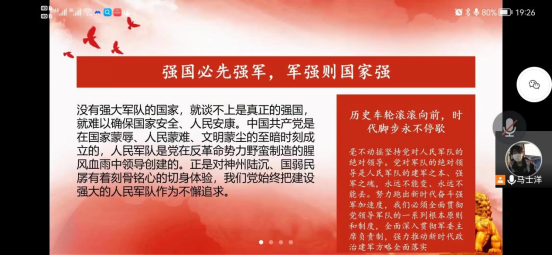 听了此次会议学生党支部的同志们对部队有了新的认识,会议期间展开讨论:解放军法定的节假日也是休息的吗?休息期间一般干什么?可以打篮球吗......之类的问题。