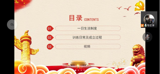 本次党日活动一共分为生活制度、训练日常及成立过程三个内容,将由视频形式展现。