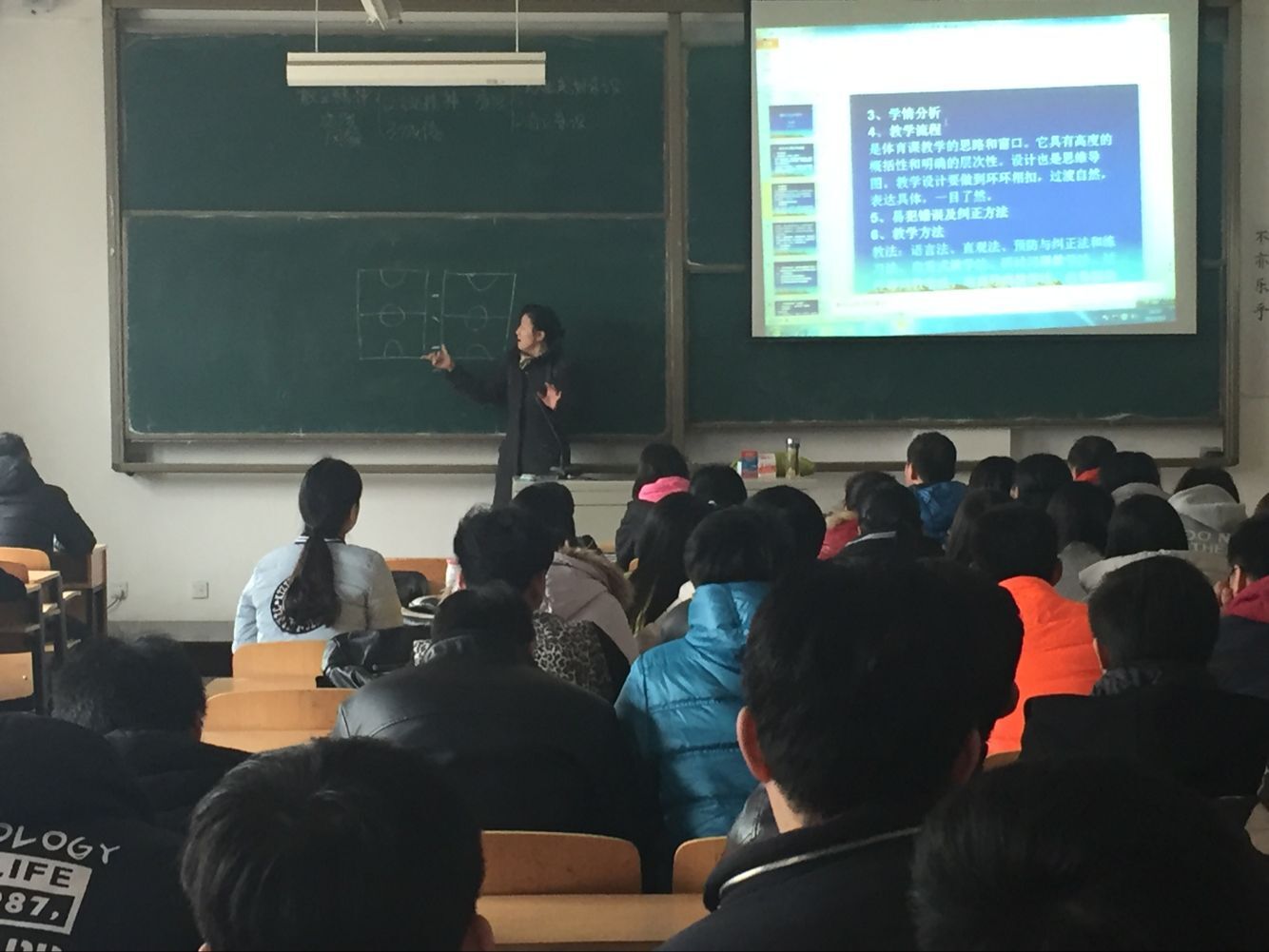 3月9日,我院邀请到国家特级教师—济南市第七中学孙红霞老师为全体毕业生做报告,针对我院体育教育专业实习的需求,孙老师从自身多年的体育课堂教学实践出发,结合新课改背景下体育课新课标要求,为我院即将走上教育实习岗位的毕业生讲授了“如何上好体育课”、“怎样进行体育课堂设计”等毕业生教育实习所急需的知识内容。最后孙老师给同学们展示了部分全国中小学体育优质课视频,并带领同学们进行讨论,使同学们对中小学体育课教学有了更进一步的认识。