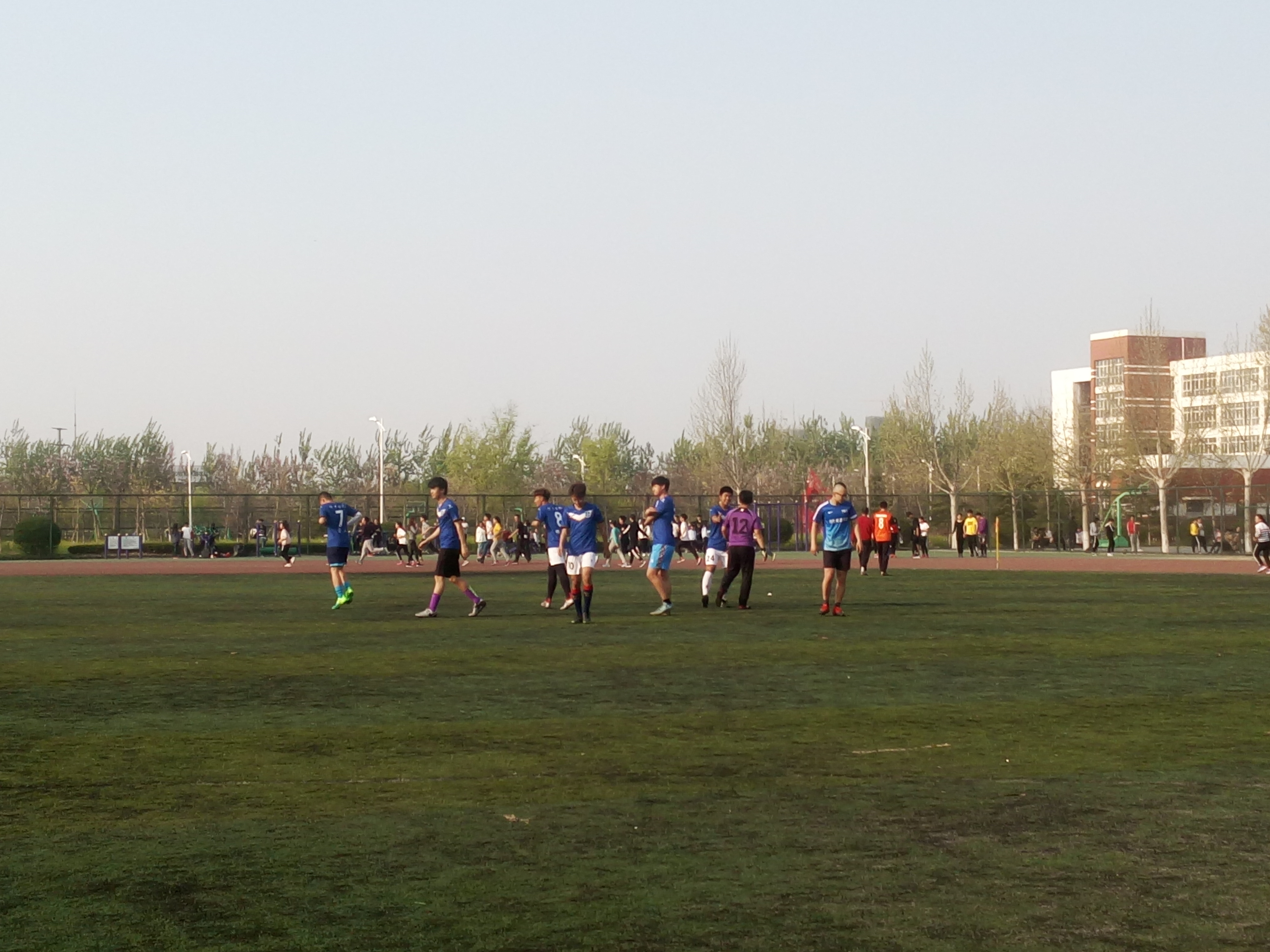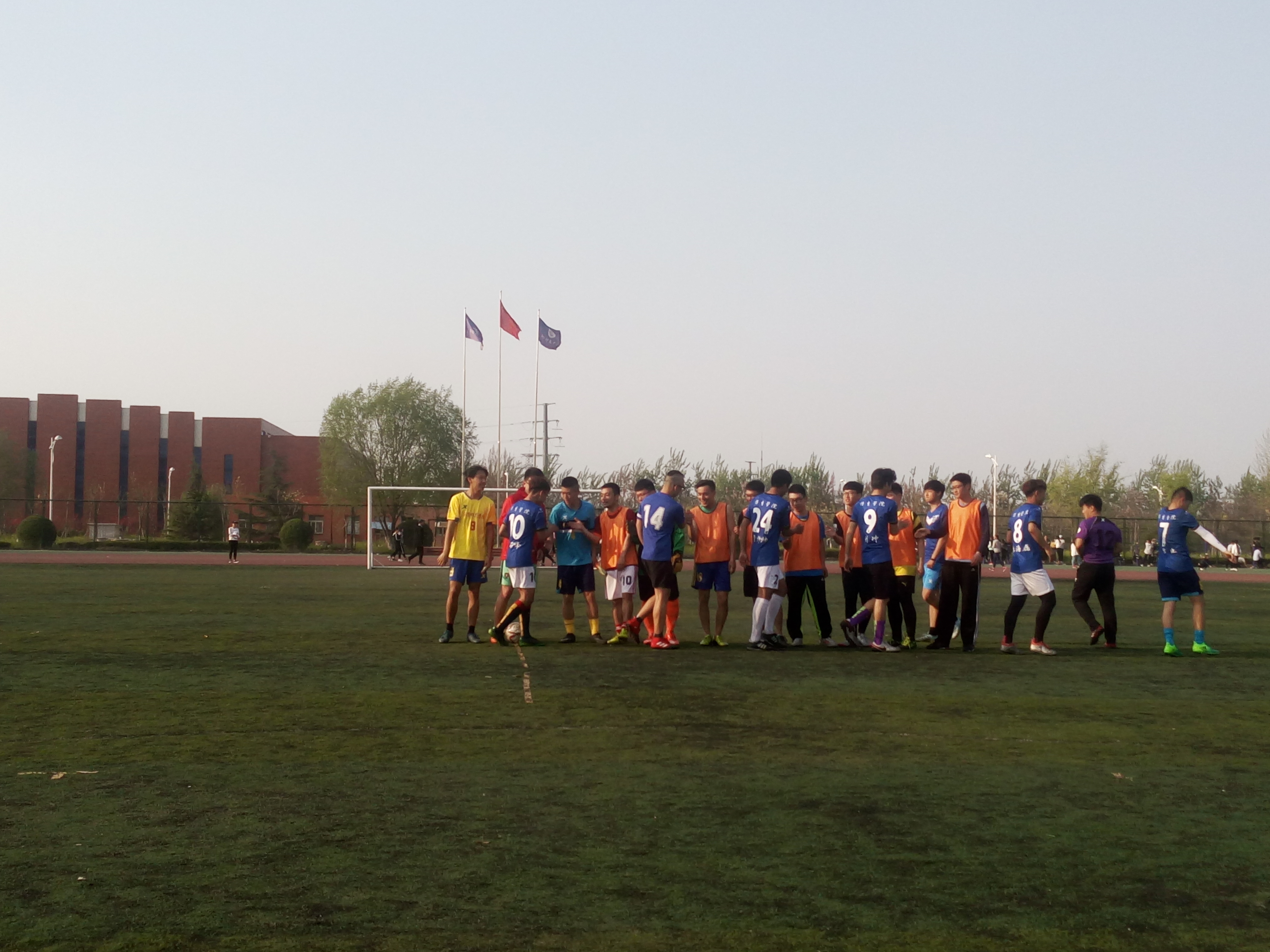 本届八人制足球赛又3月8日拉开帷幕,至4月 11日结束历时35天共计50场比赛,我校各系及教工共 10支球队参加。比赛秉承“友谊第一,比赛第二”宗旨,踢出风格,踢出水平,踢出激情,踢出强大的爆发力。根据比赛规程本次比赛录取前八名成绩。第一名音乐学院,第二名外国语学院,第三名经济与管理学院,第四名化学与化工学院,第五名教师教育学院,第六名物理与电子工程学院,第七名信息科学与工程学院,第八名马克思主义学院。