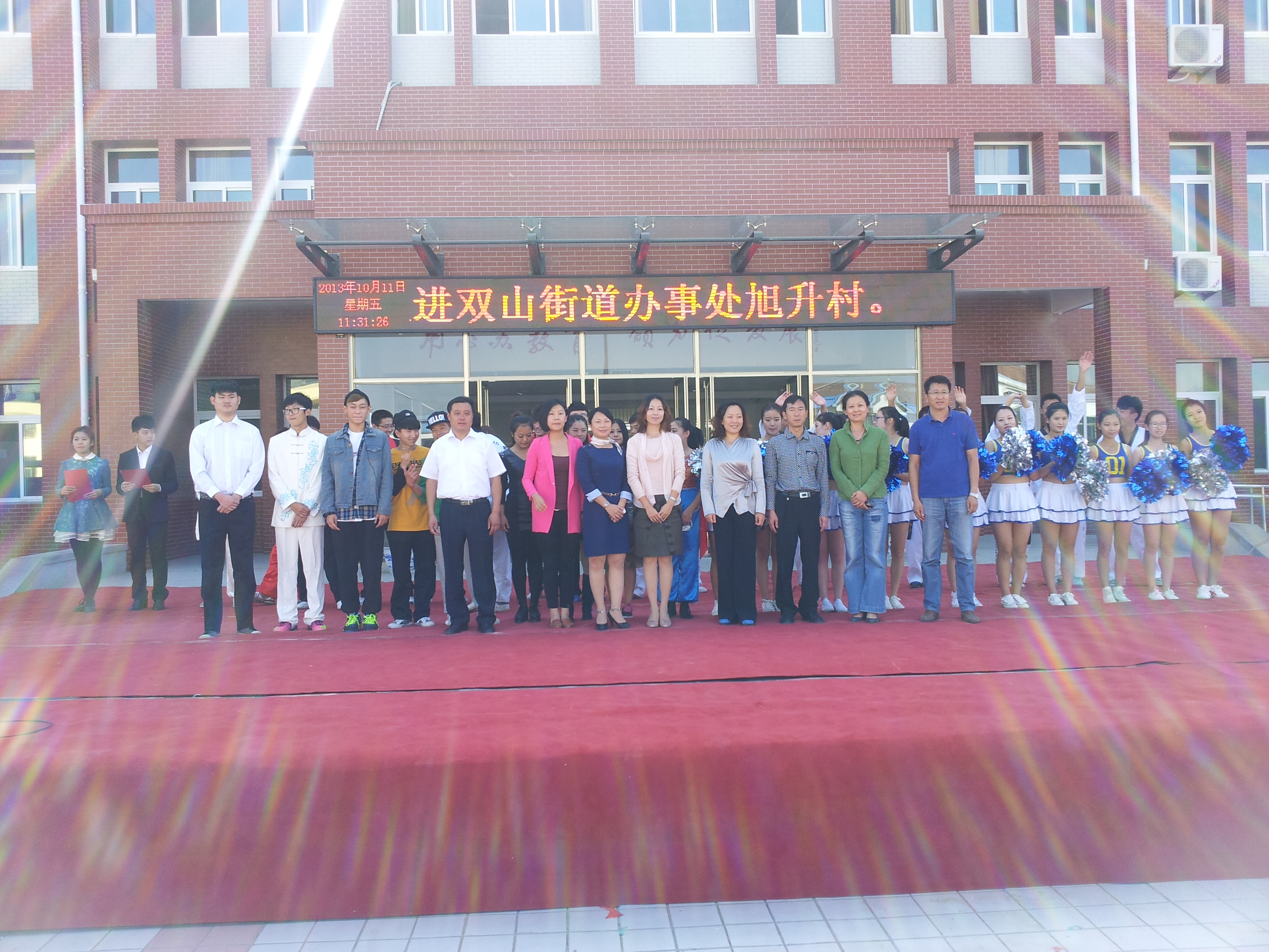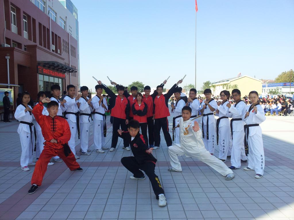 10月11日为庆祝旭升小学第26届重阳节,我院尚武协会走进双山办事处旭升村。我院共派出泮红强、孙国、王晓泉等十八人的代表队,表演分为器械类双节棍、传统武术、跆拳道、截拳道四种表演,上台时伴着高昂的音乐,精气十足的社员们逐一表演开来。精湛的棍法,敏捷有力的腿法,强有力地寸劲,无不显示着中华武术的魅力。