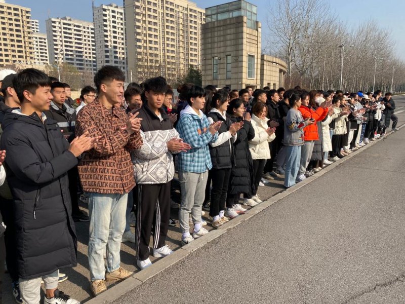 为鼓舞士气,凝聚力量,11月27日中午,yl6776永利集团体育教育专业学生参加2021年山东省高校体育教育专业学生基本功大赛出征动员会在学校北门举行。yl6776永利集团学院党总支副书记李萧,辅导员李鹏飞,指导教师贾磊和参赛队员参加此次动员会。体育教育专业全体学生早早地来到了出征仪式现场,希望用自己的热情和祝福为参赛学生加油助威。