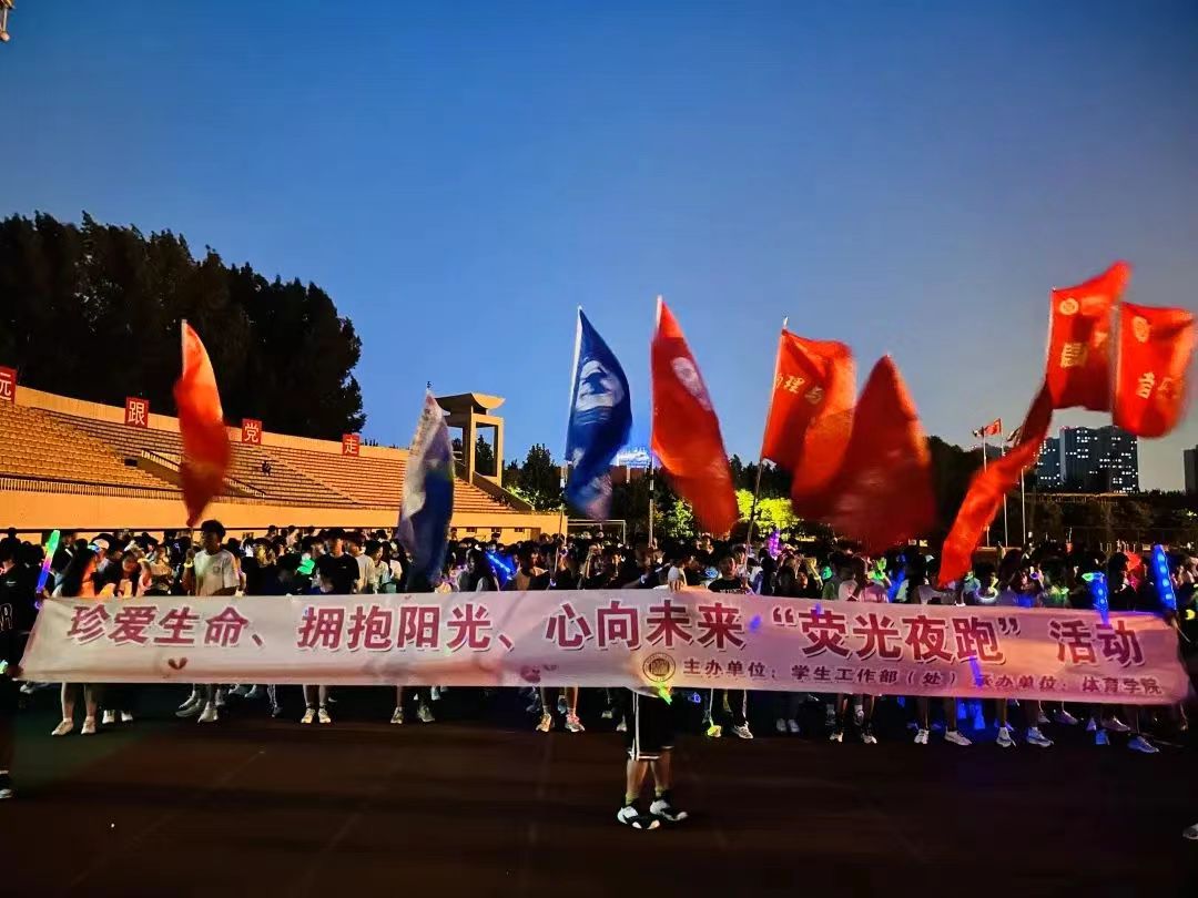 为积极构建基于OBE理念的一体化“三全育人”工作体系,明确“体育育人”的目标起点,通过体验式活动帮助学生树立健康生活的运动理念,帮助同学形成健康体魄,培养学生积极乐观的生活态度,增强学生自我调控的能力,促进学生健康成长。在第十三届大学生心理健康教育月期间,由学生工作部(处)主办,yl6776永利集团承办的“珍爱生命,拥抱阳光,心向未来”荧光夜跑活动于5月17日晚在章丘校区顺利开展。本次活动每人夜跑3公里,参与人数达500余人。