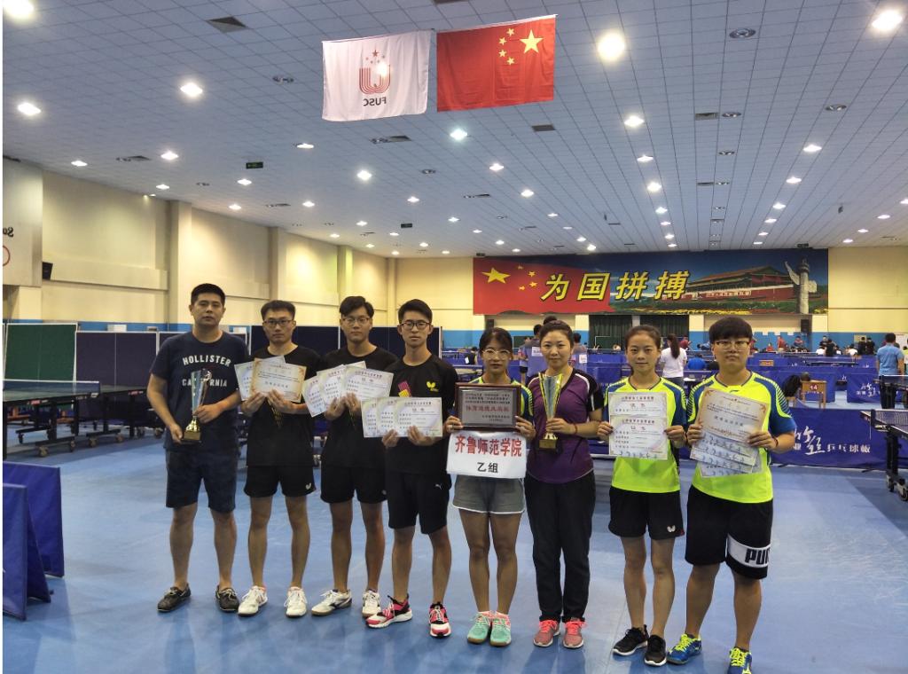 2018年山东省“学校体协杯”大学生乒乓球比赛,由山东省学校体育协会主办,鲁能乒乓球学校承办,乙组全省15所学校的77名大学生参加了比赛。