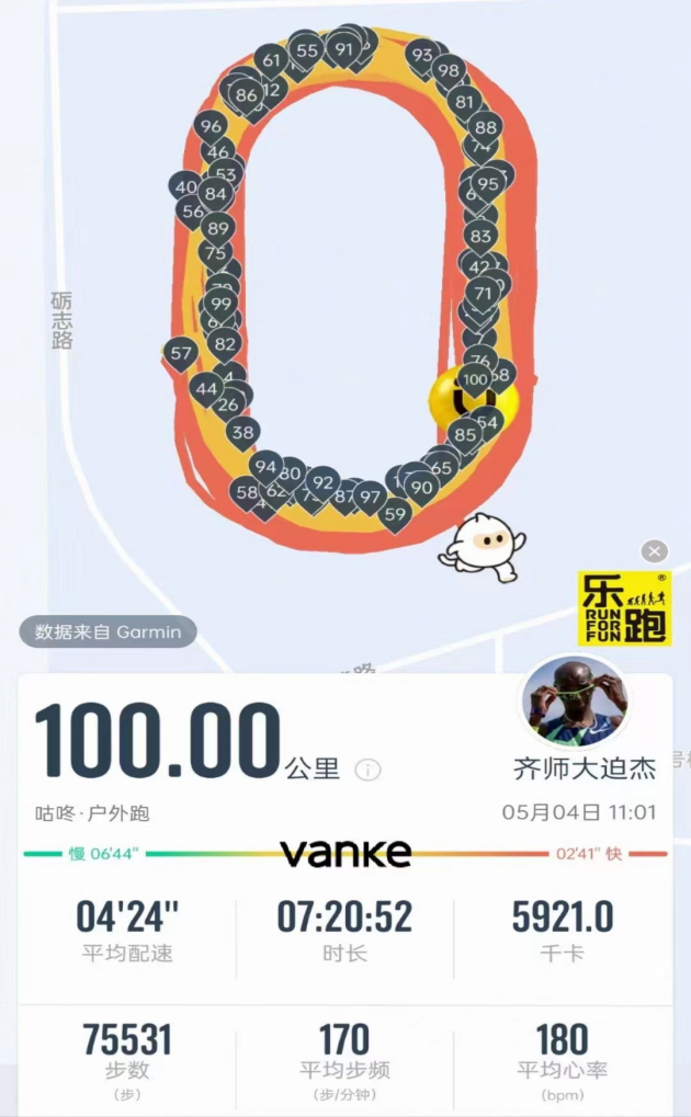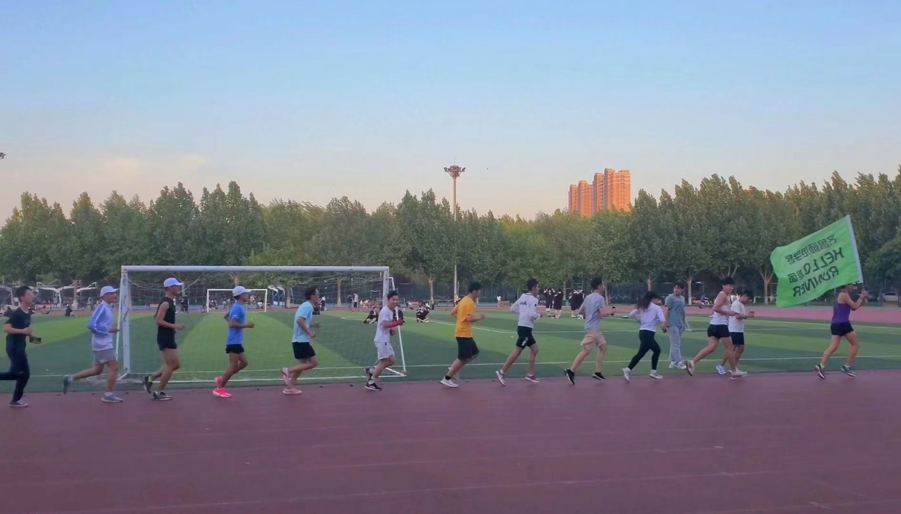 中午11点,在国旗的照耀下,活动正式开始。同学们一圈又一圈的奔跑,以跑步接力的方式,追寻先辈足迹、传递真理火种。经过同学们集体的努力,历时七个多小时,围绕操场250圈,共计十万米!