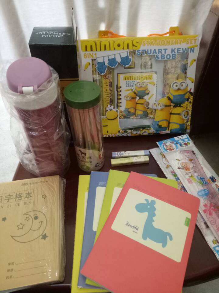 很想对老师说,老师您辛苦了,谢谢那些好心人。你看我领到了一个蓝色的保温水杯、一盒子铅笔、卡通形的橡皮、还有好多写字的小本本,好大一抱哩,我都特别喜欢,可好了,我得好好学习表现”。一个三年级留守儿童高兴的说着……