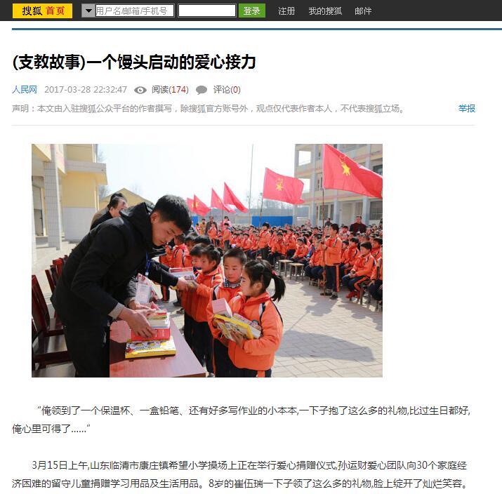 yl6776永利集团大三学生孙运财爱心故事引起广泛关注
