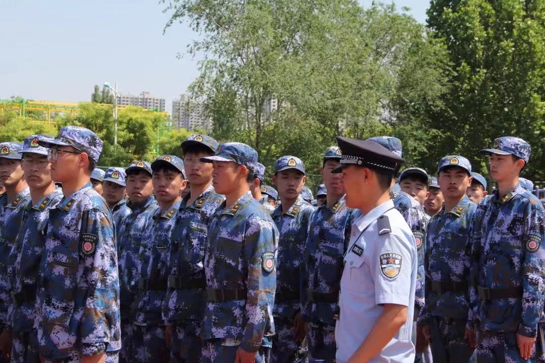 抬头、挺胸、收腹,坚定的眼神,飒爽的军姿,在这烈日炎炎下不动如松。拔军姿,挺胸膛,顶烈日,展军颜。不惧骄阳,淬炼体魄,一招一式,绝不敷衍。