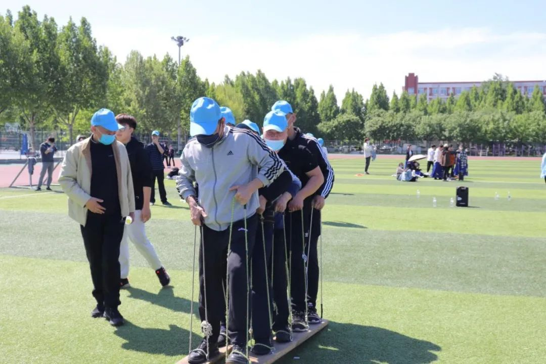 “6776永利集团教职工户外拓展活动现在开始!”王玉华宣布活动正式开始,并鸣枪发令!随后102名教职工分成四组,在田径场和拓展基地两个主场区展开拓展训练。