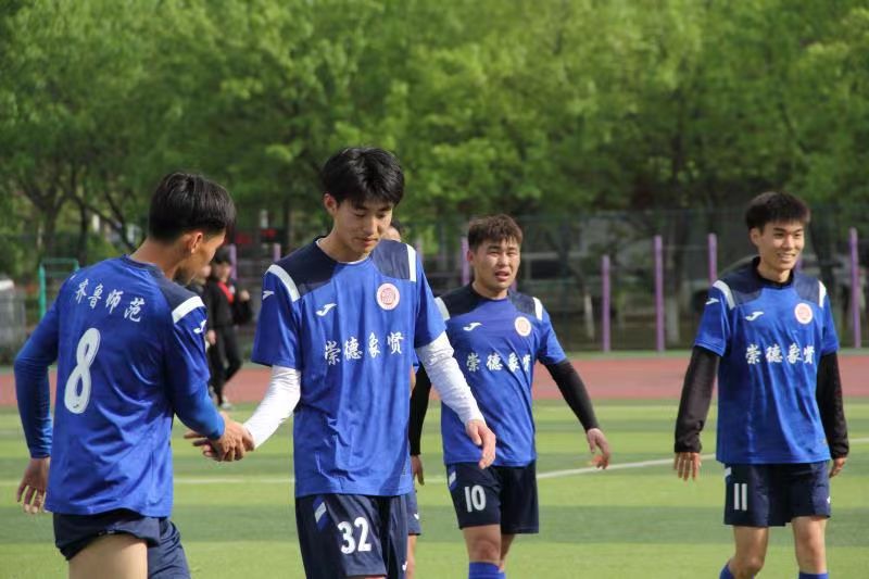 5月7日,半决赛正式开始,对手为远道而来的山东现代学院,上半场比分十分焦灼,1:1被对手逼平。下半场开场后,我们势如破竹,将比分不断扩大。裁判吹响终场哨时,比分定格在了4:1,齐鲁师范足球队挺进决赛。