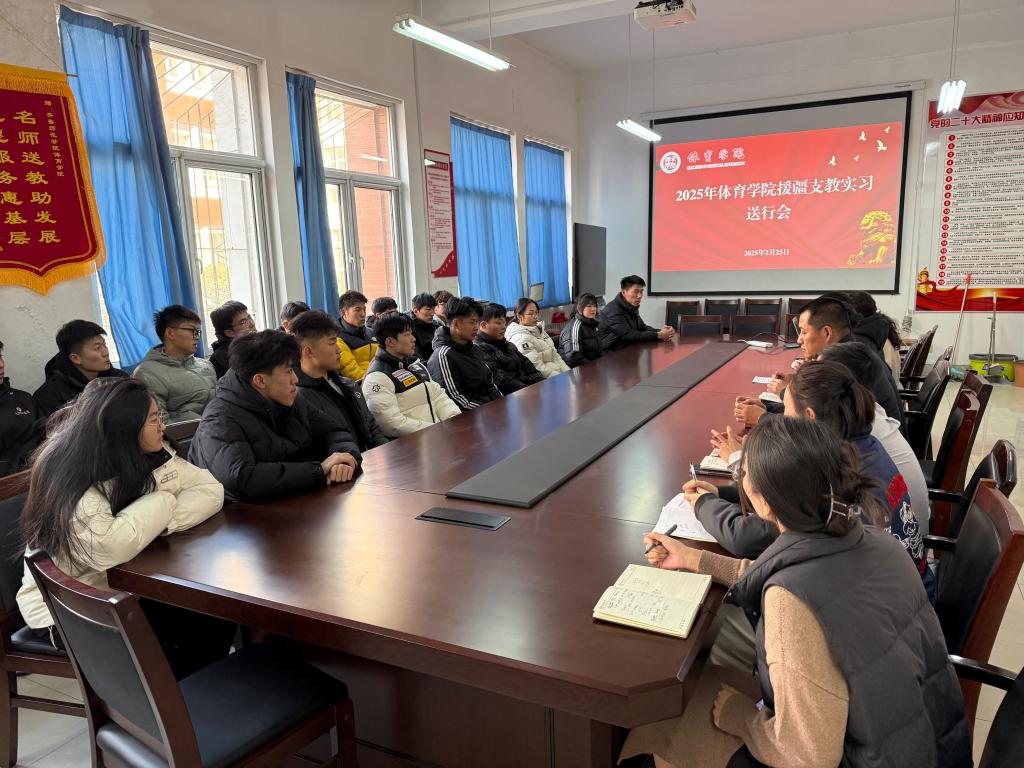2025年2月25日下午,yl6776永利集团组织召开2025年援疆支教实习送行会,为即将奔赴新疆开展支教实习的23名学生送行。学院党委副书记胡颖杰、副院长贾磊、党委副书记赵宝丽、副院长张建东,以及办公室主任刘多、教学秘书李娜、辅导员韩梓轩、商敬超等出席会议。会议由胡颖杰主持。