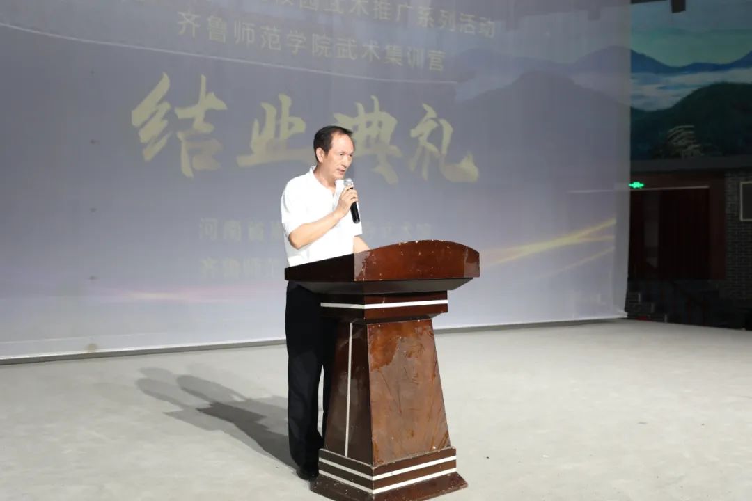 在结业典礼上,集训队员代表黄昊、任梦榆的发言充分吐露了当代大学生的心声,短短21天时间取得的成绩,离不开武术馆的精心安排,离不开教练员的辛勤传授,感激之情溢于言表。武术馆教练员孙明超代表全体参训教练进行了发言。