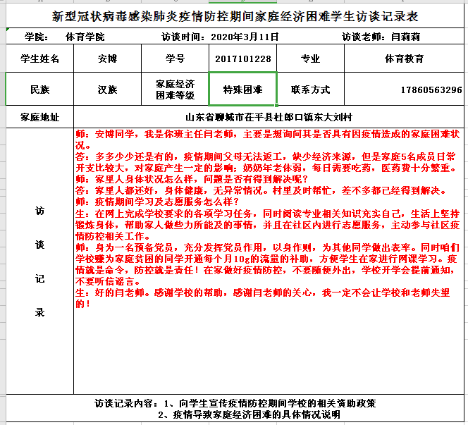 2020年3月,新型冠状病毒肆意蔓延,学校非常重视疫情下家庭受困学生,下发《关于做好新型冠状病毒感染肺炎疫情防控期间学生资助工作的通知》(学工部函〔2020〕4号)要求,为切实保障家庭经济困难学生基本生活需求,帮助因疫情影响导致经济困难的学生及其家庭渡过难关,学校启动疫情防控期间临时困难资助。