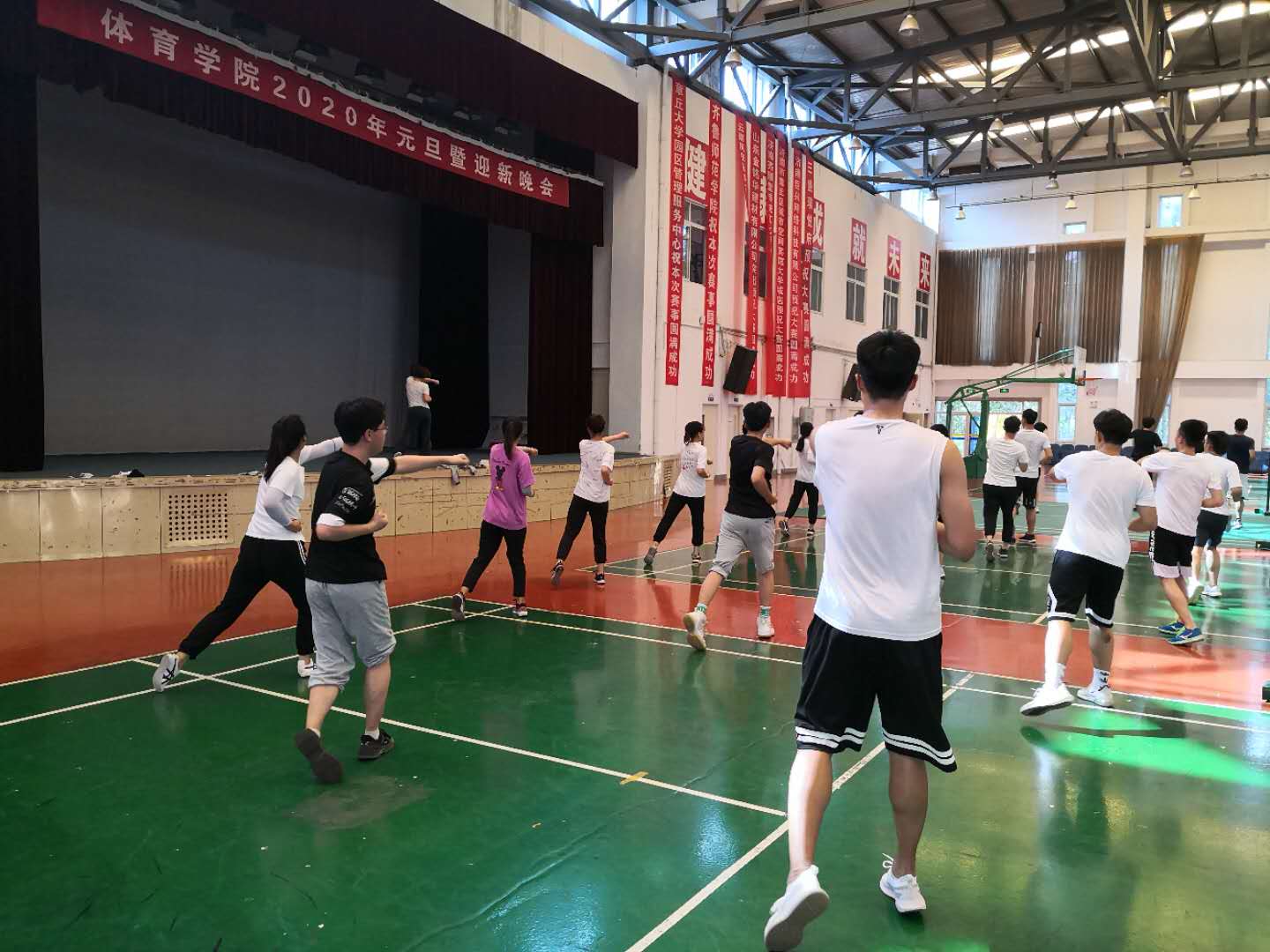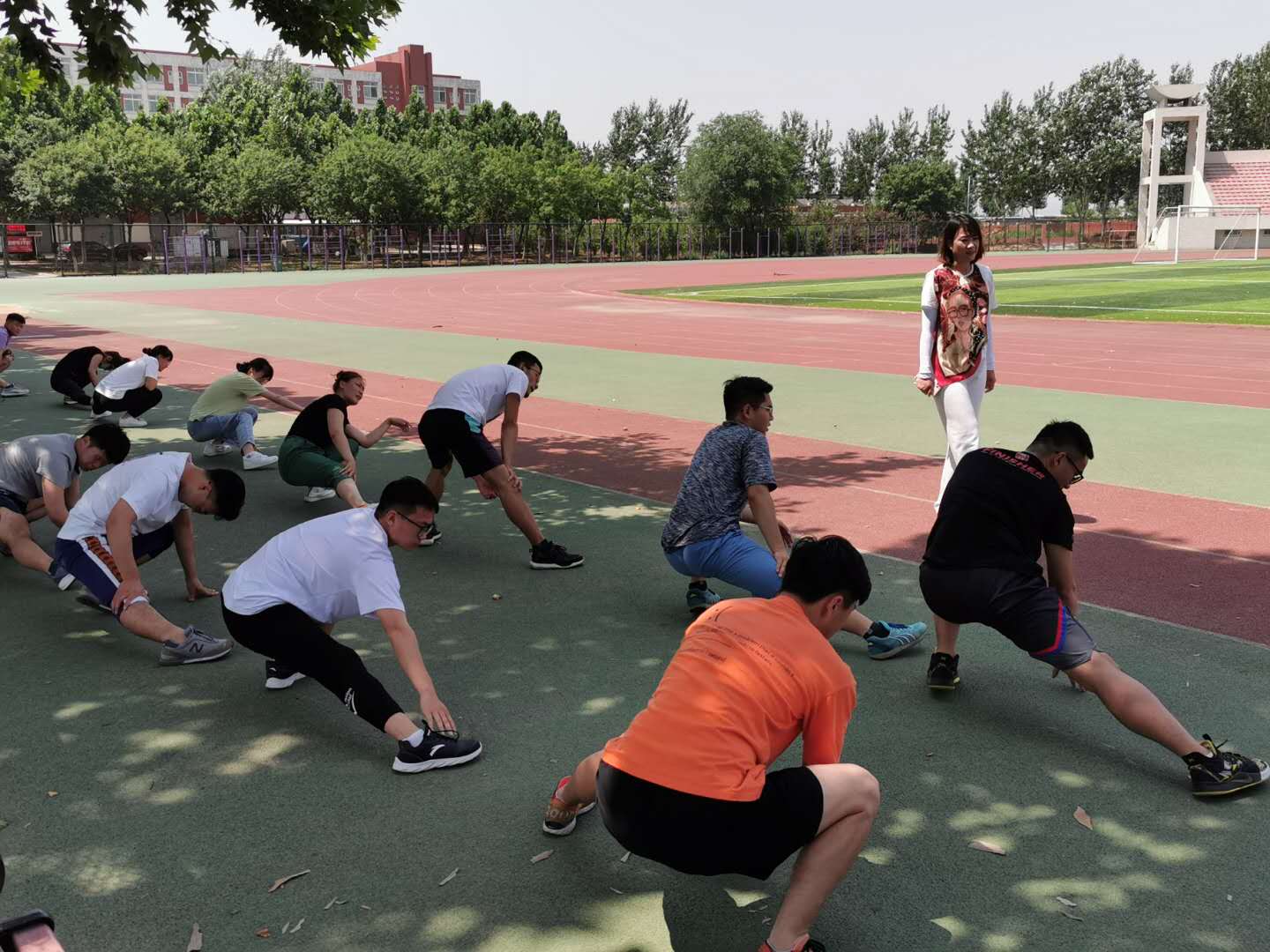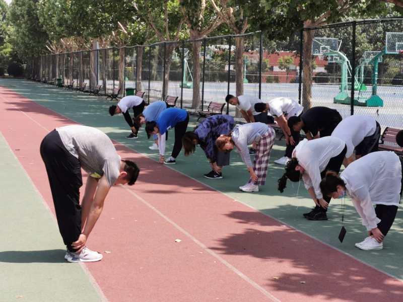 图12 孙强副教授带领学生做拉伸运动