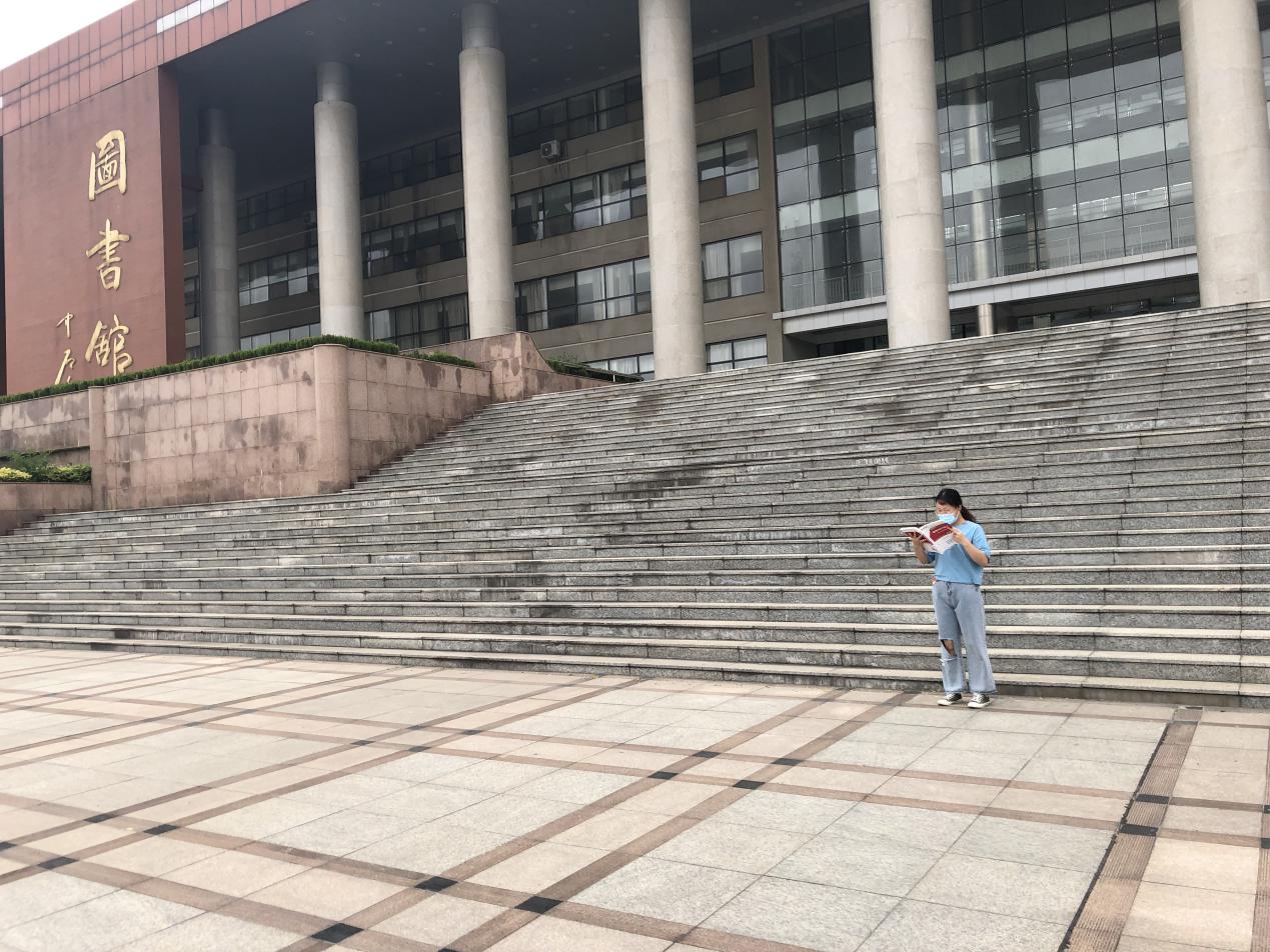 图4 学生在图书馆前晨读