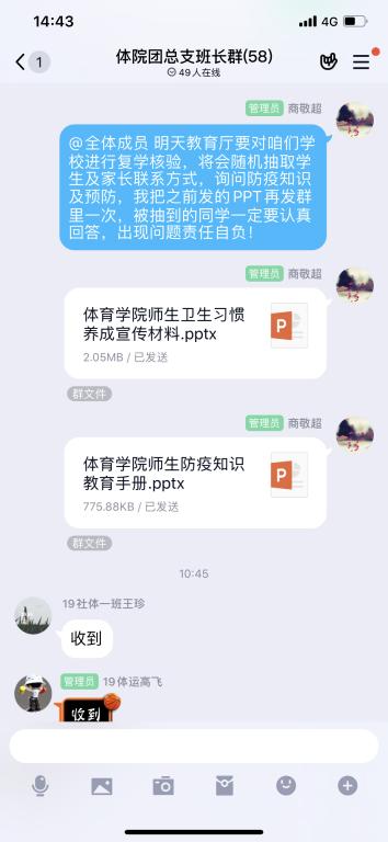 组织全体师生观看国家广播电视总局播出的《2020开学第一课》并要求每名同学认真观看,总结观后感。为了推动学习,yl6776永利集团专门整理了一套疫情防控应知应会题库,通过工作群、微信公众号等平台发送,对师生加强全覆盖宣传教育。