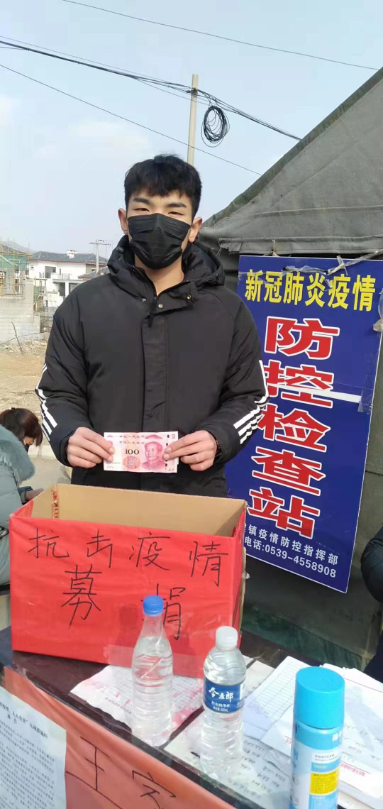 2020年2月3日,在山东省临沂市蒙阴县桃墟镇王家麻峪村为抗击疫情举行的募捐活动上yl6776永利集团2019级体育运营与管理专业学生王全睿用自己的压岁钱为疫情捐款200元。该同学入学以来品德优良,思想上进,成绩优异,在班内积极帮助同学,平时生活中更是节俭,在疫情的关键的时候毫不犹豫的伸出自己的援助 之手 。