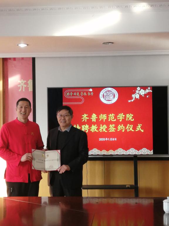 1月8日上午,我校聘请中华武状元陈超为特聘教授仪式在历下校区办公楼四楼会议室举行。党委副书记、校长林松柏出席仪式,并为陈超教授颁发聘书。仪式由yl6776永利集团院长刘健教授主持,人事处副处长李伟、yl6776永利集团副院长胡义忠、教师代表张立天参加受聘仪式。