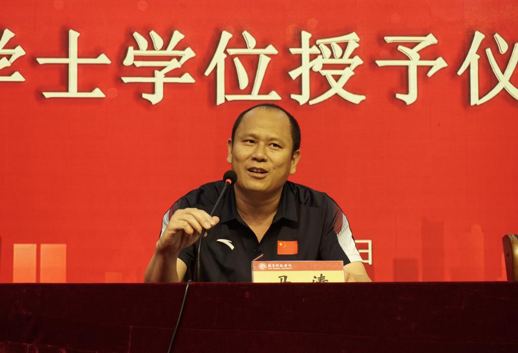 马涛在致辞中对2023届全体毕业生顺利完成学业表示热烈祝贺和美好祝福。他表示,获得学位是人生中一件大事,也是为了让大家在这一重要时刻有一种仪式感和获得感!未来不管是继续深造,还是奔向各自工作岗位,不要在意眼前的得失,决定将来幸福指数的是思想、人生观、价值观。最后,马涛向毕业生提出了三点希望:要心存善念,常怀感恩之心;要有乐观的性格,健康的体魄;要继续学习,勇攀高峰。随后,刘健教授向2023届毕业生提出了“尊敬父母、诚实守信、踏实做事、诚实做人、开拓创新、奋发有为、报效祖国”的殷切希望。