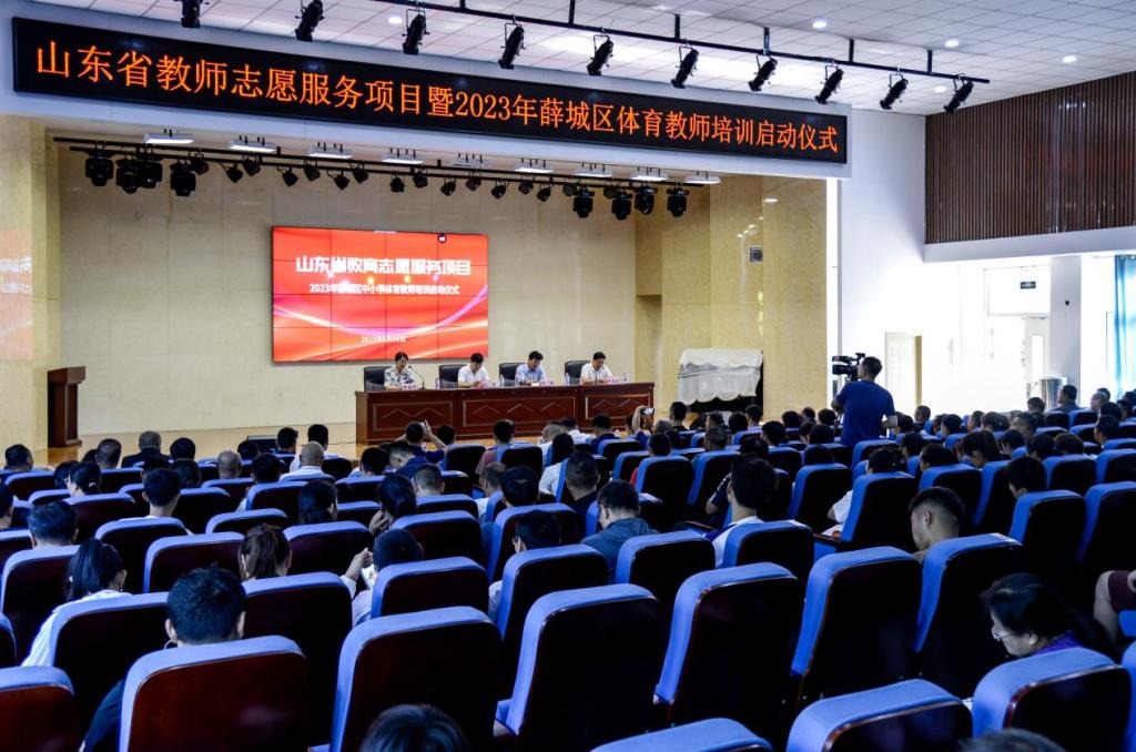 为进一步贯彻落实山东省教育厅关于组织实施山东省志愿服务项目通知文件精神,提高项目县区学科教师教学能力。8月16 日,山东省教育志愿服务项目暨薛城区中小学体育教师培训启动仪式在枣庄市薛城区举行。枣庄市教育局党组成员 市教科院院长邓淇、薛城区副区长周海燕、鲁师范学院yl6776永利集团副院长张雷以及各相关市区科室负责同志和区内全体体育学科教师代表共计260余人参加。启动仪式由薛城区区委教育工委常务副书记、教体局党组书记、局长种法立主持。