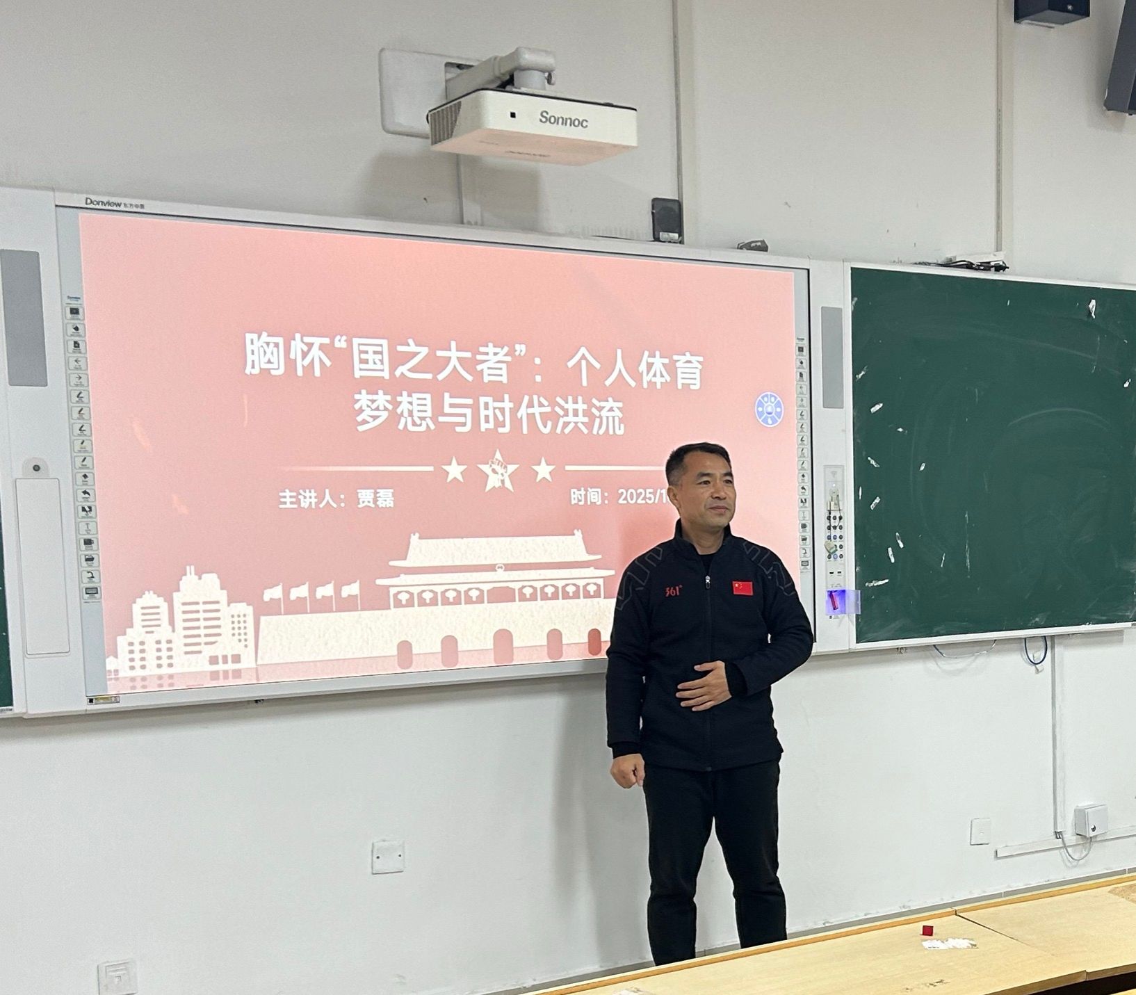 10月21日晚,我院贾磊院长在1号教学楼B127教室以"胸怀'国之大者':个人体育梦想与时代洪流"为题,为2025级体育教育专业全体新生带来了一场立意高远的思想政治课。
