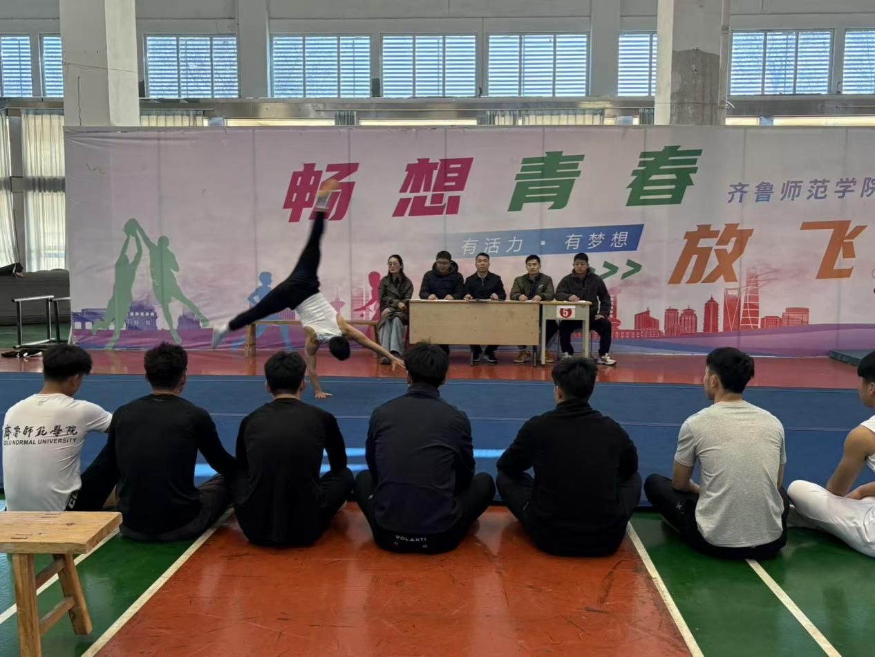 本次院赛为纯技能比赛,严格对标第十四届山东省师范类高校学生从业技能大赛规程,聚焦体育教育专业核心技能,田径、百米足球、篮球、排球、体操、武术6 个竞赛项目,全面考核选手动作规范、技术熟练度、示范表现力与专业基本功,赛事标准严谨、比拼氛围浓厚,充分贴合体育教师岗位技能需求。比赛现场,参赛选手精神饱满、斗志昂扬,在 6 个项目中依次展示扎实功底,动作规范流畅、示范清晰到位,充分展现体育专业学生的良好技能素养。裁判团队严格遵循评分标准,公平公正执裁,细致点评技术细节,帮助学生查漏补缺、提升水平。