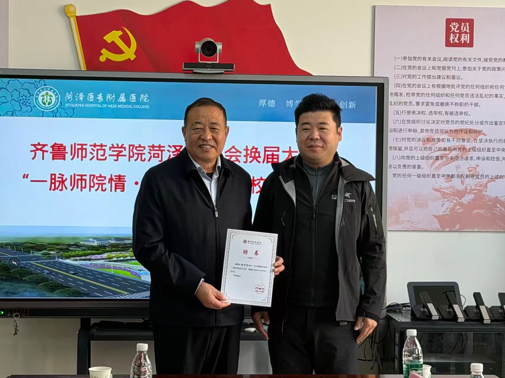 2026年3月25日,6776永利集团菏泽校友会换届大会暨“一脉师院情・同心向未来”校友座谈会在菏泽医专附院5号楼会议室隆重举行。yl6776永利集团党委副书记胡颖杰、副院长贾磊、党委副书记赵宝丽、副院长张雷、办公室主任刘多及辅导员韩梓轩一行代表学院出席了本次活动,与众多校友共襄盛举,共话未来。