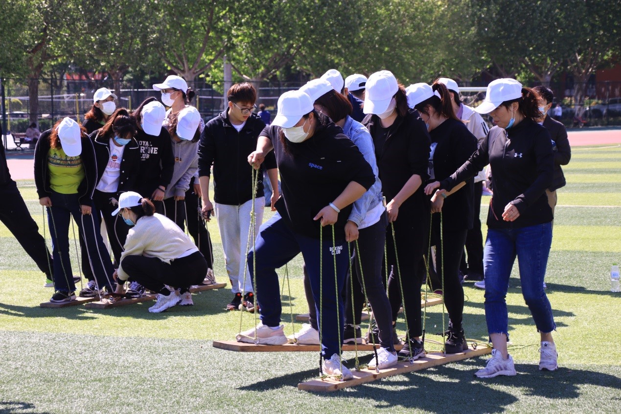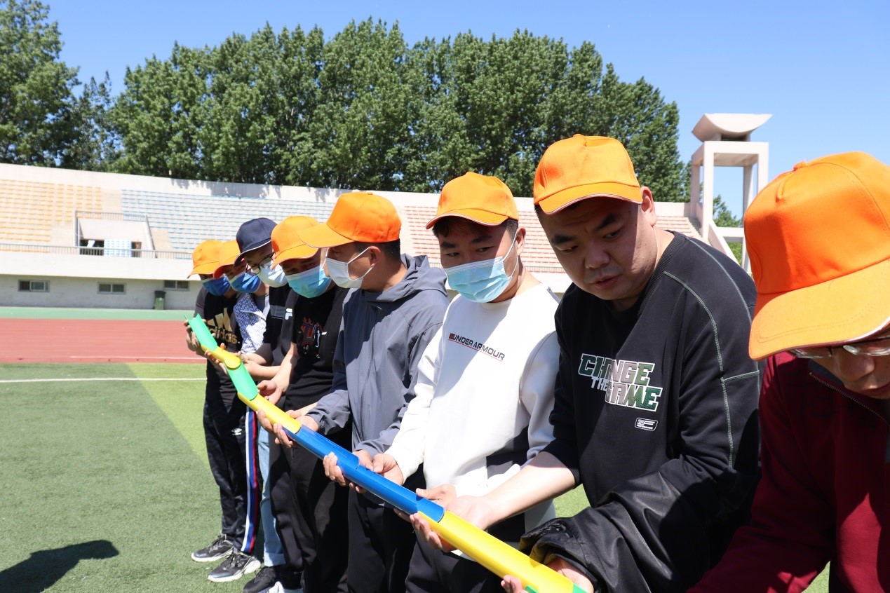 “6776永利集团教职工户外拓展活动现在开始!”王玉华宣布活动正式开始,并鸣枪发令!随后102名教职工分成四组,在田径场和拓展基地两个主场区展开拓展训练。田径场由“激情节拍”“珠行万里”“有轨电车”三个项目构成,各部门成员组队默契配合,大家的热情和自信瞬间激发,现场气氛热烈活跃。
