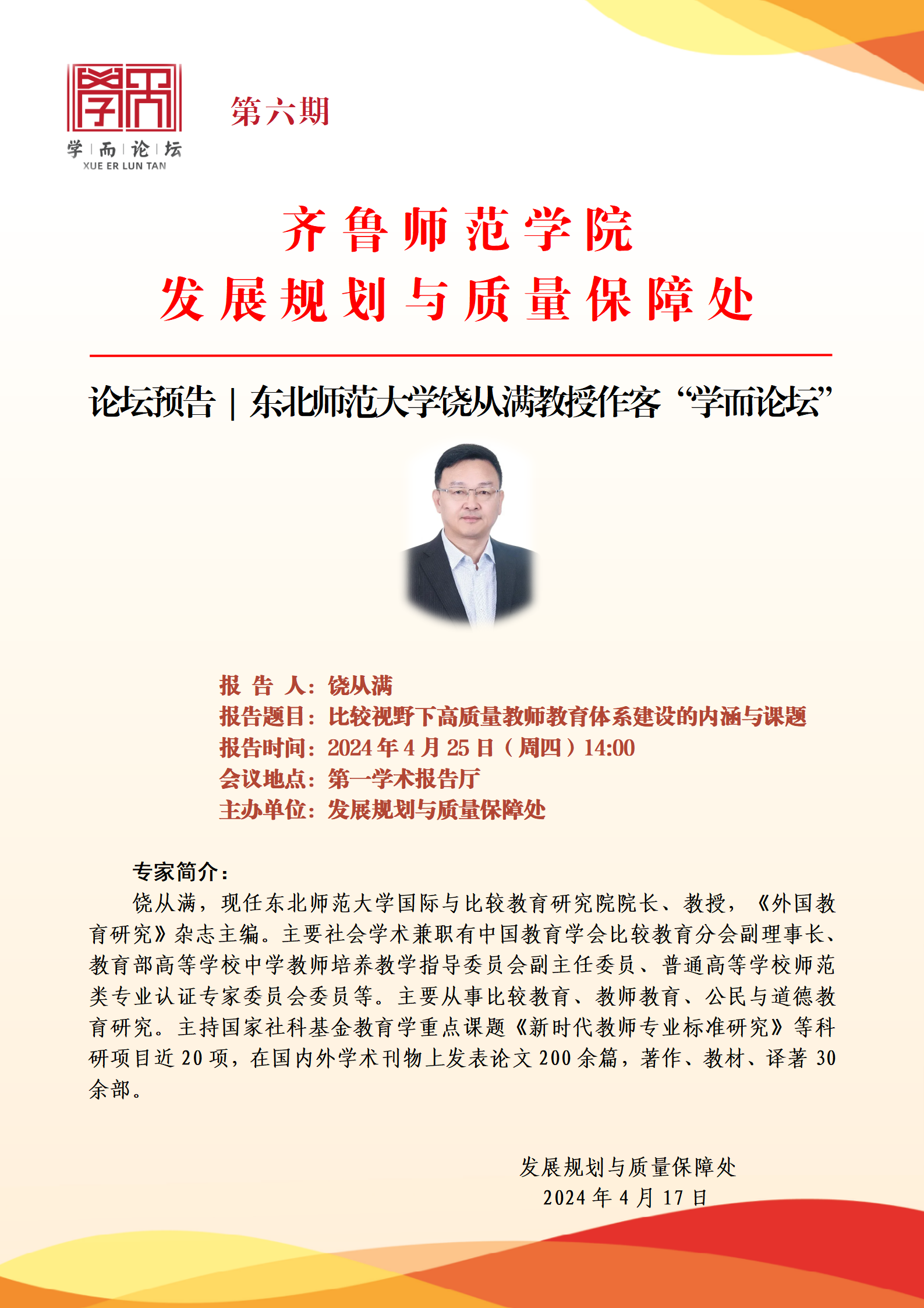 论坛预告 | 东北师范大学饶从满教授作客“学而论坛”