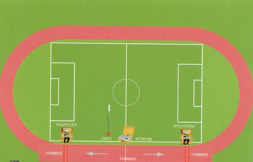 3.男生从1000米的起点起跑,在跑道进行两圈半的跑步,最后通过终点,听见“滴”声后,终点计时主机自动停止计时并记录考试成绩。