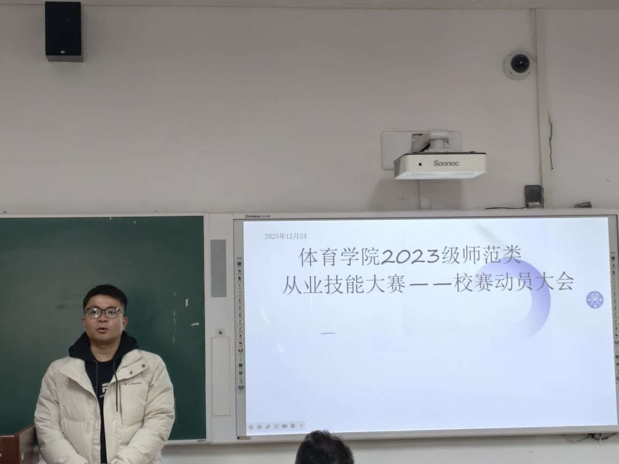 为夯实师范生专业基础,锤炼教学实践技能,全力备战校级师范类专业从业技能大赛,2025年12月24日,yl6776永利集团召开2023级师范类专业从业技能大赛校赛动员大会。yl6776永利集团副院长贾磊、体育教育专业负责人刘飞主任等老师以及2023级全体师学生参会。