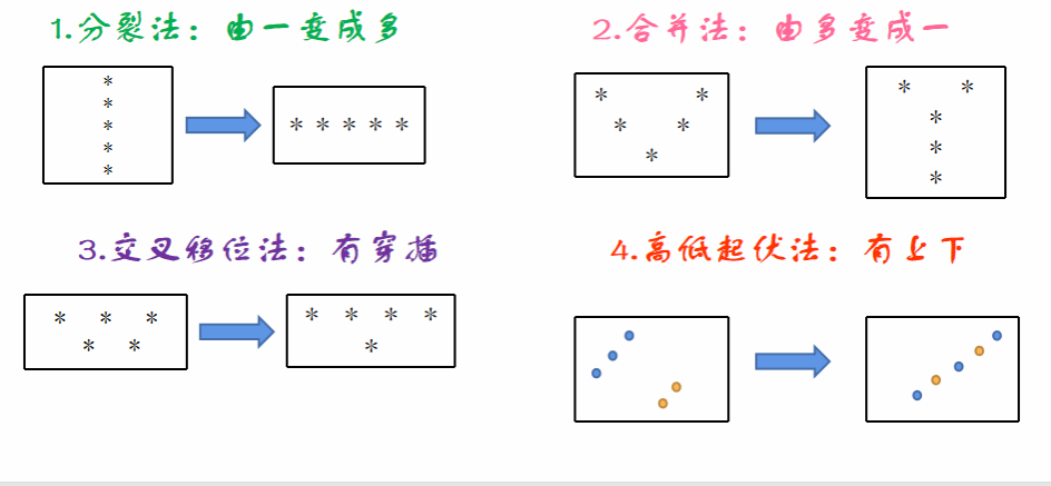 教学重点:明确健美操队形设计的构图清晰、丰富新颖、对比鲜明、变化流畅、安全可控五大基本原则,学会使用分裂法、合并法、交叉位移法、高低起伏法四大变化方法,掌握队形变化的“NICE”原则。